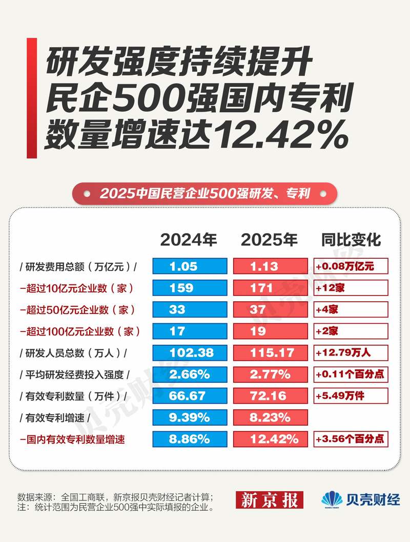 2025年“中国民营企业500强”呈现哪些特点?企业规模较上年有何变化?新京报贝壳财经记者梳理近两年“中国民营企业500强”,挖掘民营企业如何“量质齐升”,向高质量发展转型。